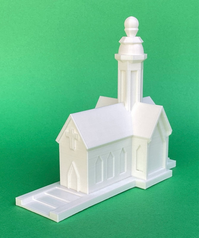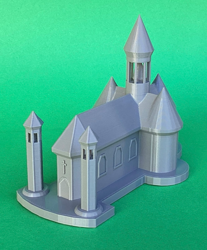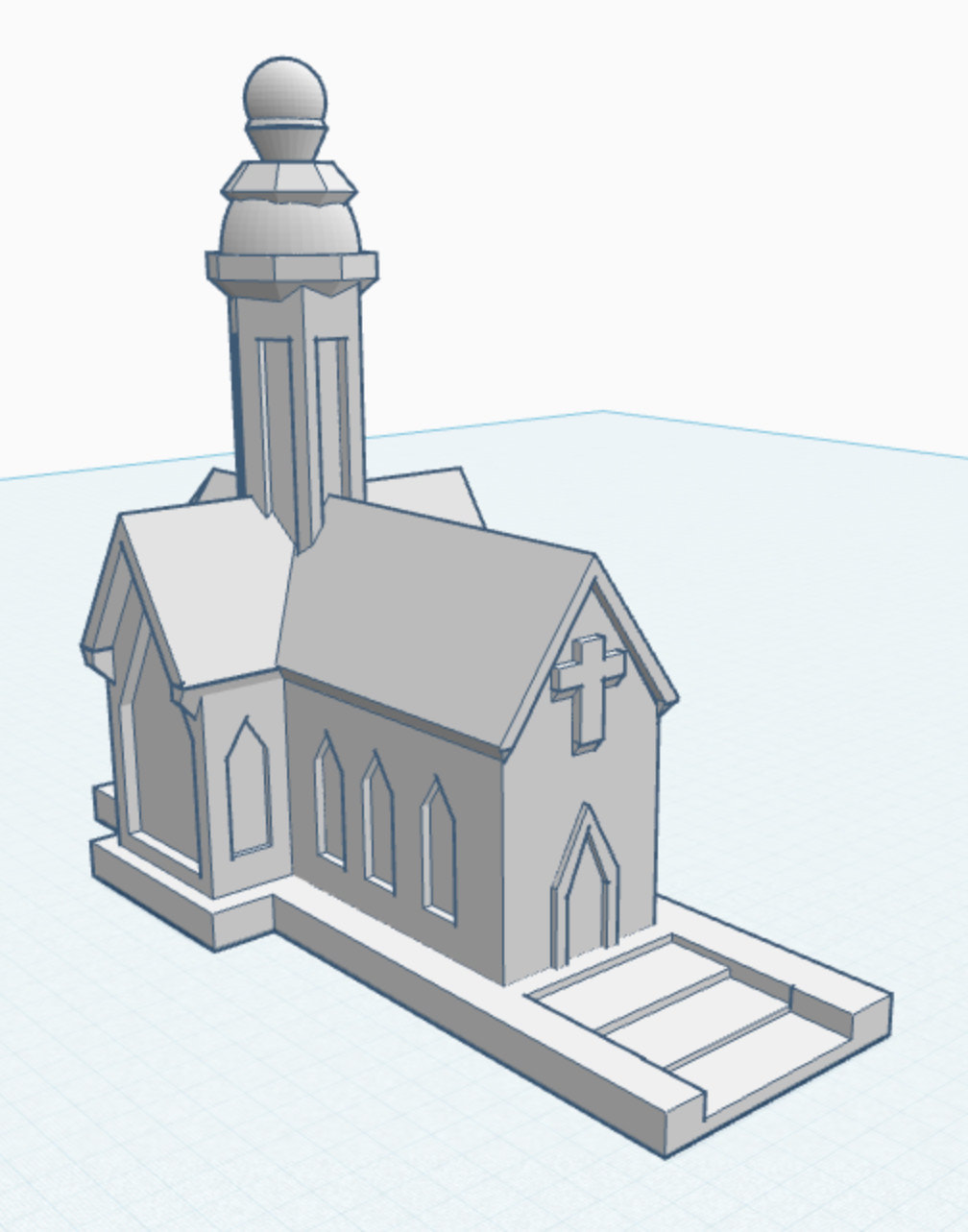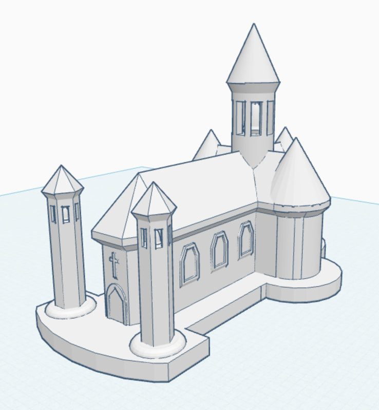 The 3D prints and computer-aided designs of churches shown below are by 6th grader Christopher Tulis and 8th grader Lucas Mora. They are members of our middle school robotics and CAD group, which meets on Thursdays and Fridays.