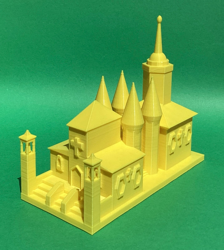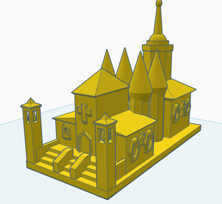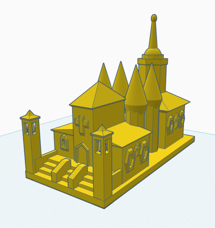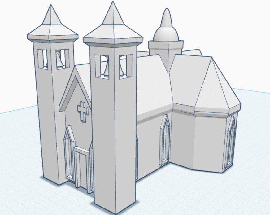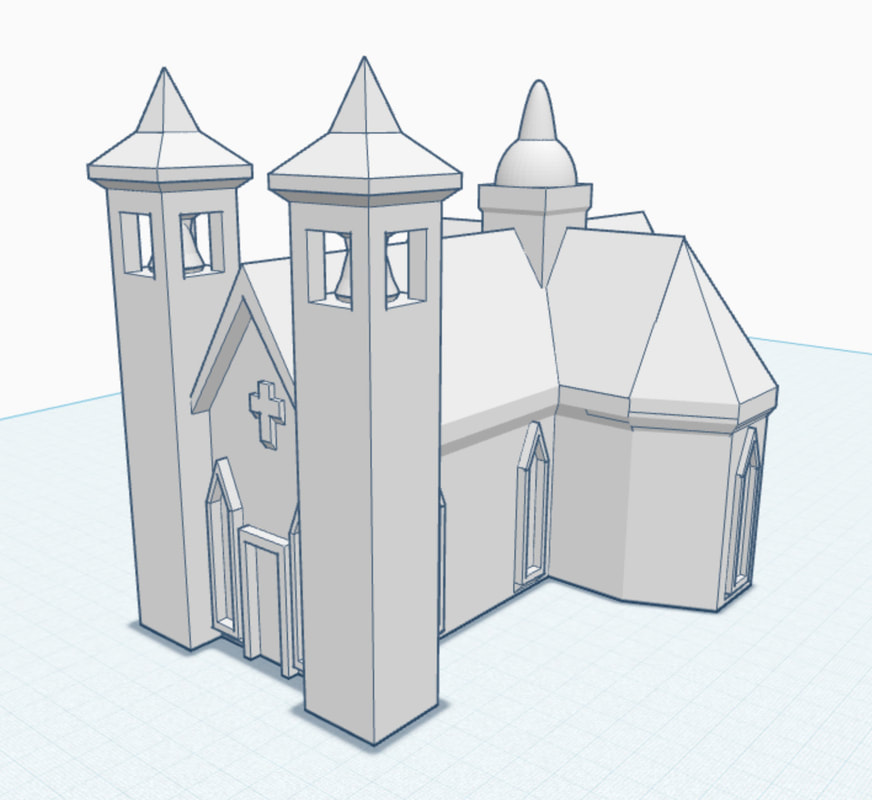 The Tinkercad church models shown below were designed by eighth graders Cooper Worthington and Aaron Lin. The resulting 3D prints also appear here. Cooper and Aaron are members of our middle school robotics and CAD group.