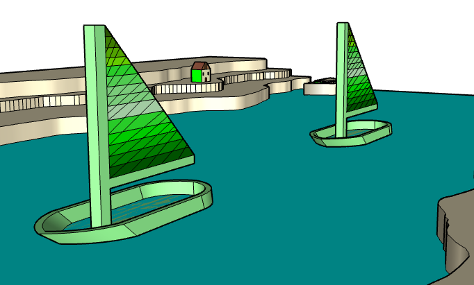 Fourth grade art students have been making virtual 3D models of sailboats in landscapes with Sketch Up for Schools computer-aided design (CAD) software on Chromebooks.