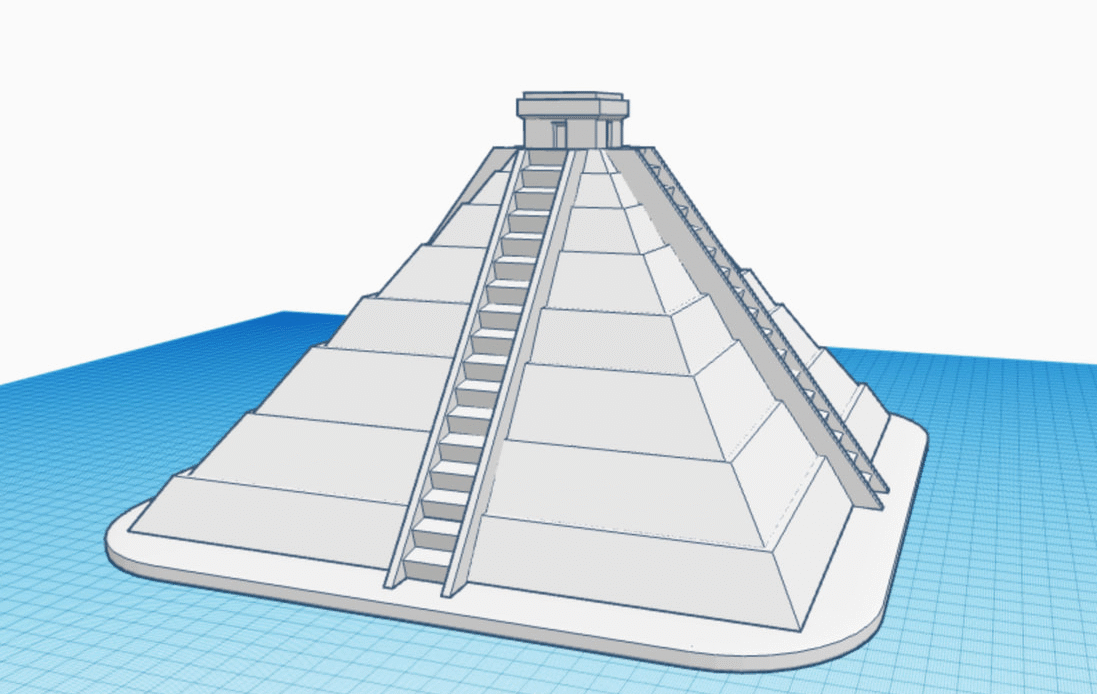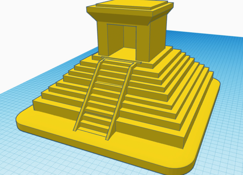 As part of their work for a project in Mr. Melton’s Social Studies class, some sixth graders are choosing the option of creating Tinkercad models of Mayan and Aztec pyramids, as well as other structures, for 3D printing. Mr. Bell is instructing interested students in the use of computer-aided design technology. The first two 3D-prints of students’ designs inspired by Mesoamerican pyramids are the works of Cohen Hogan and Haiden Simo. These students’ Tinkercad designs, from which the prints were made, are shown here along with the 3D prints.