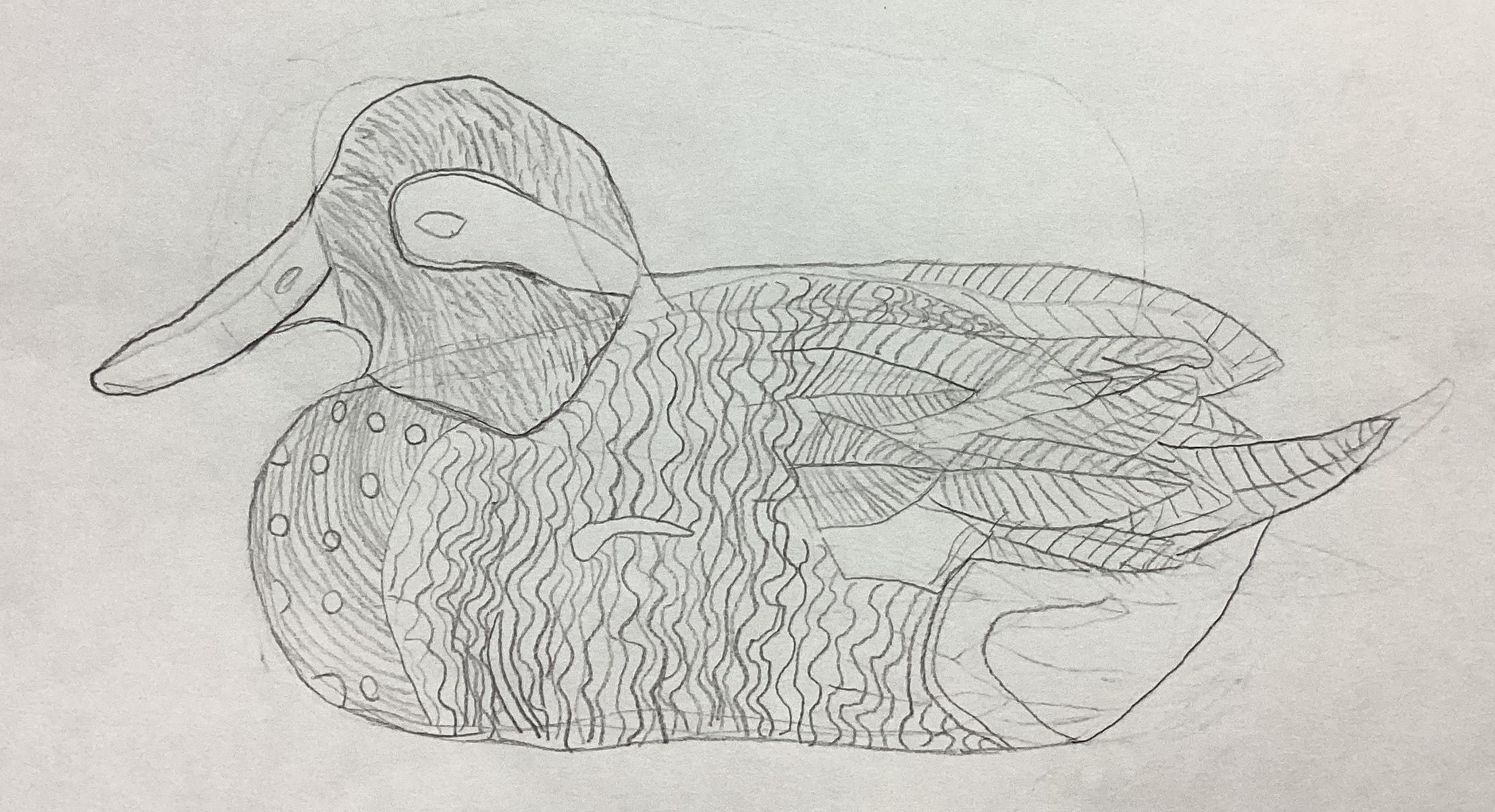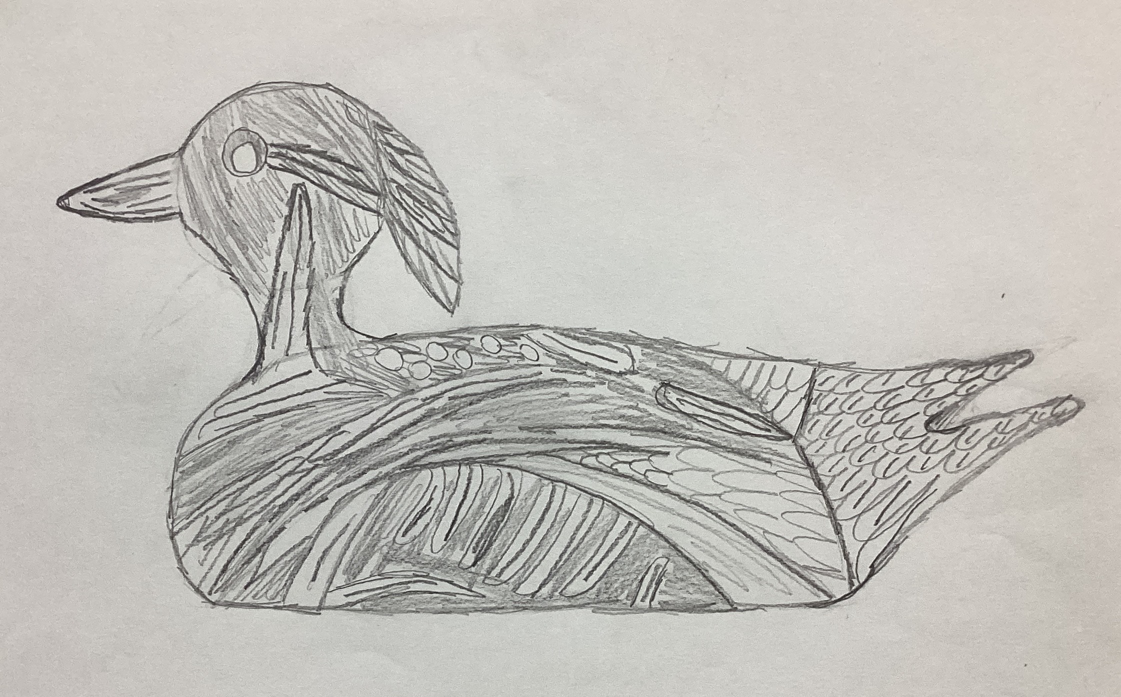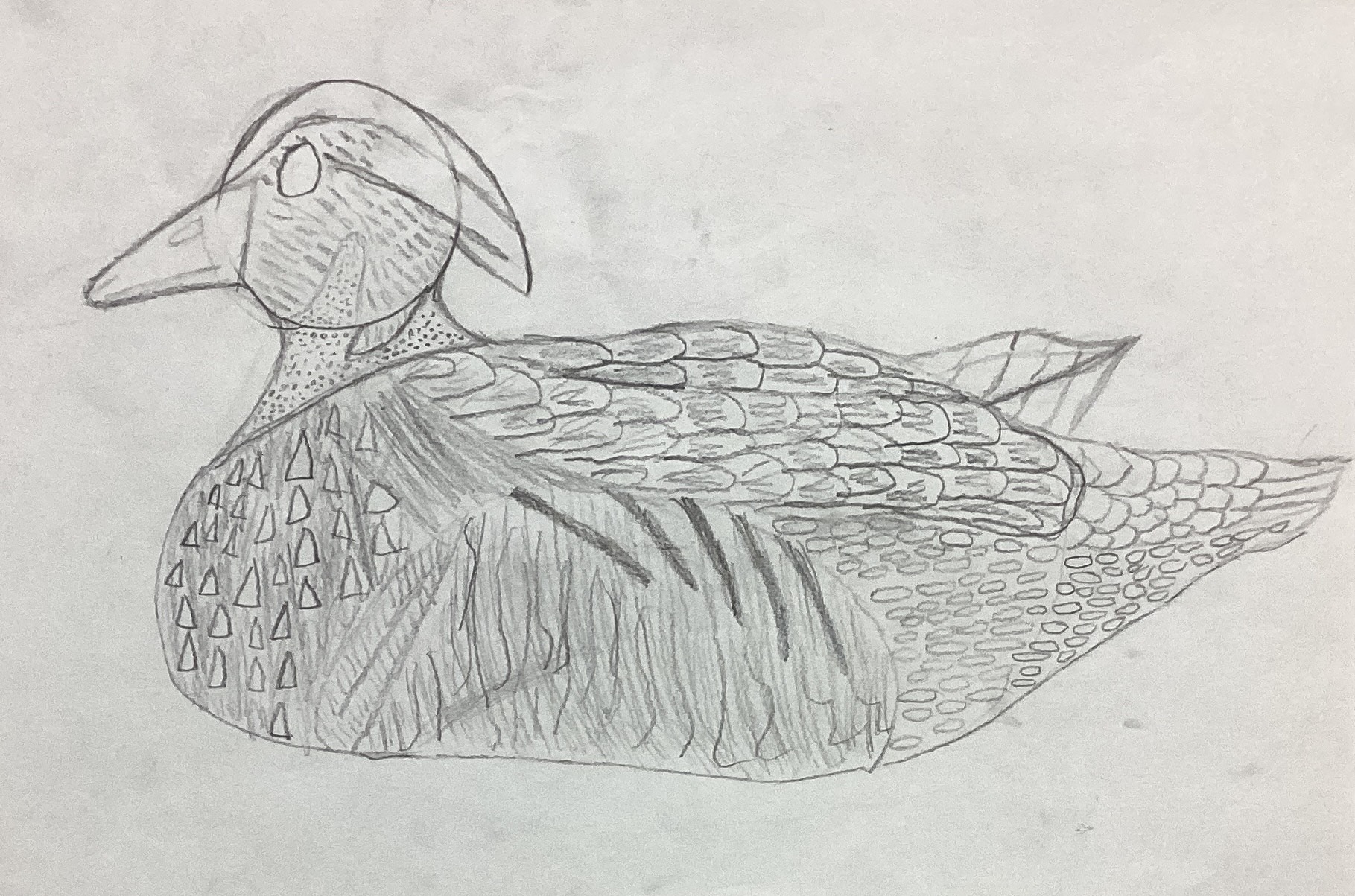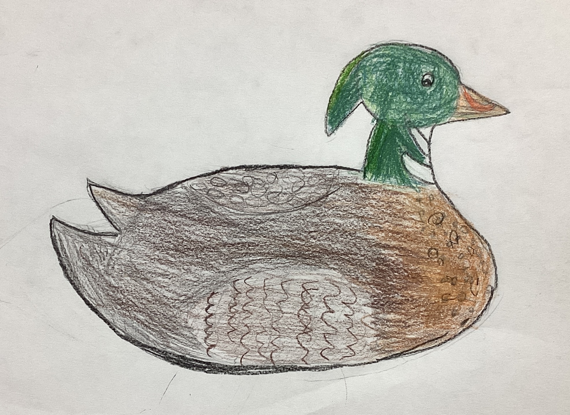 Fourth grade art classes recently had a lesson in drawing duck decoys. The pictures shown here are students’ interpretations of plastic duck decoys that were positioned on tables in the Spiritual Life Center of our Church. The drawing that appears above is by Declan Hildebrand.
