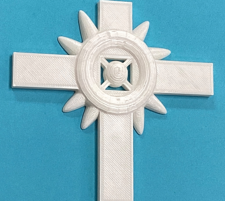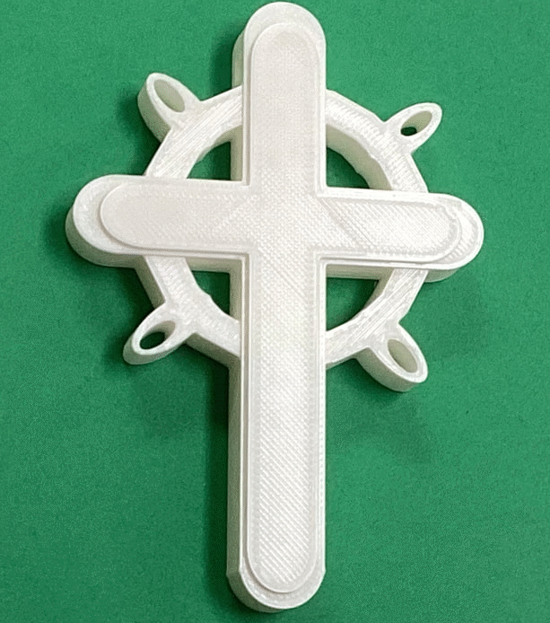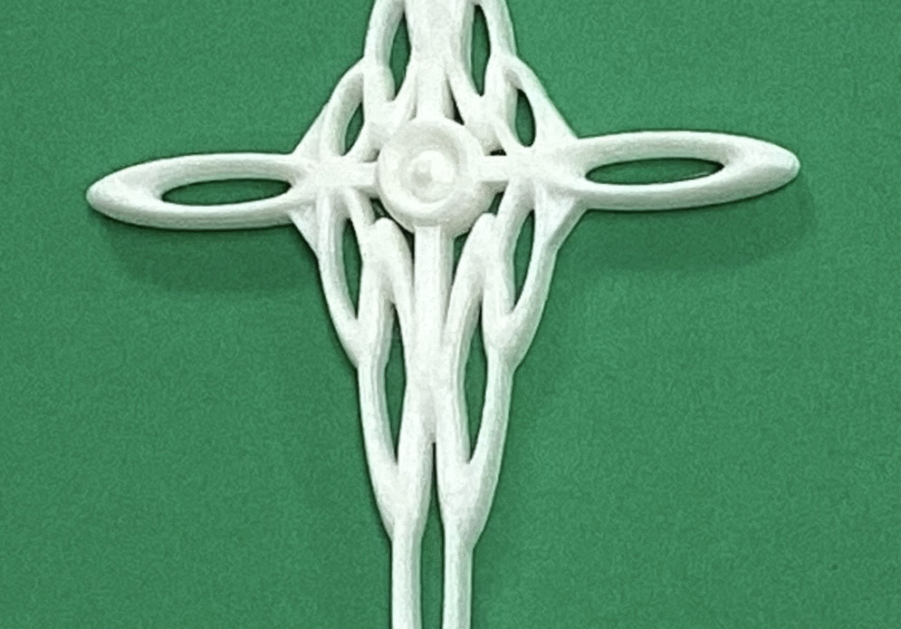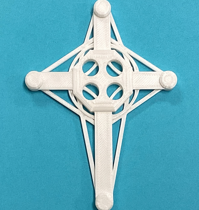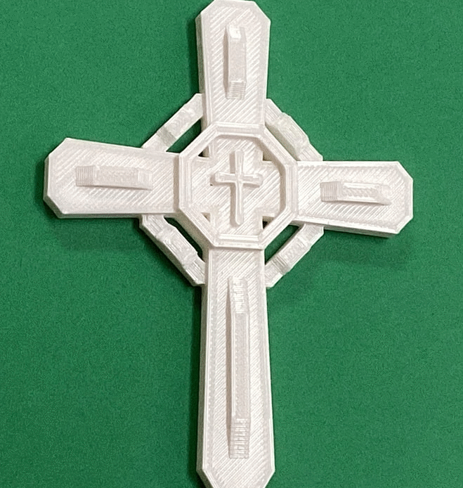 Eighth grade Art Tech students designed cross pendants with the Tinkercad computer-aided design app. Shown below are 3D prints of some of their work, which can be worn on a string or thin chain.