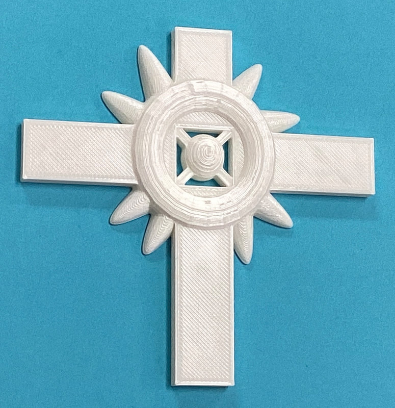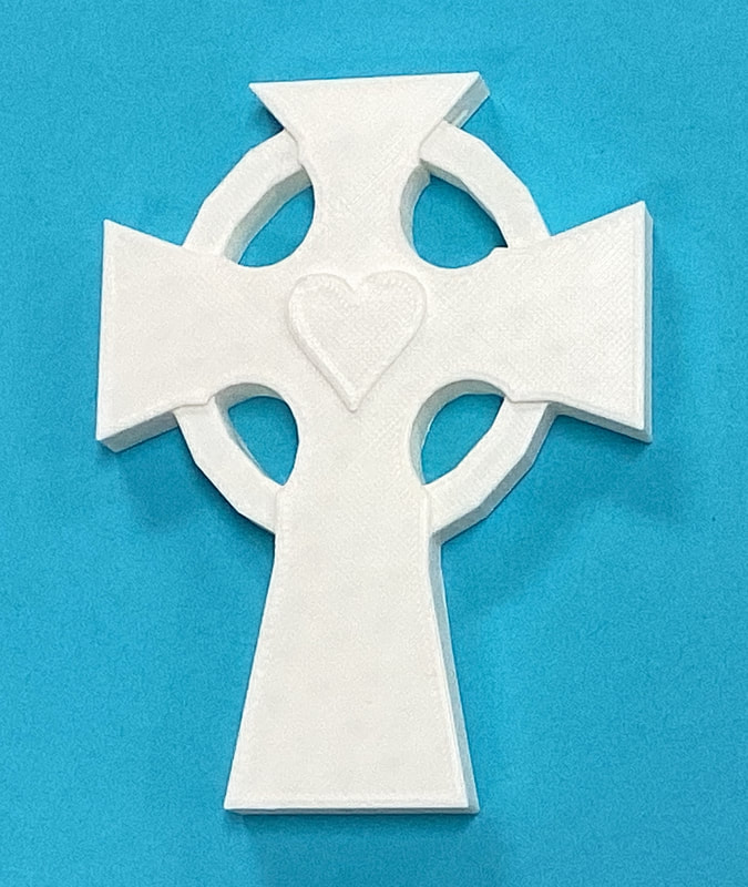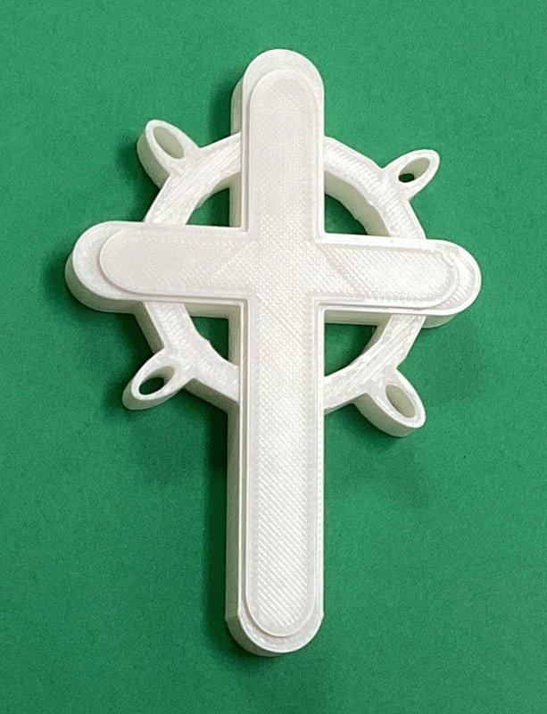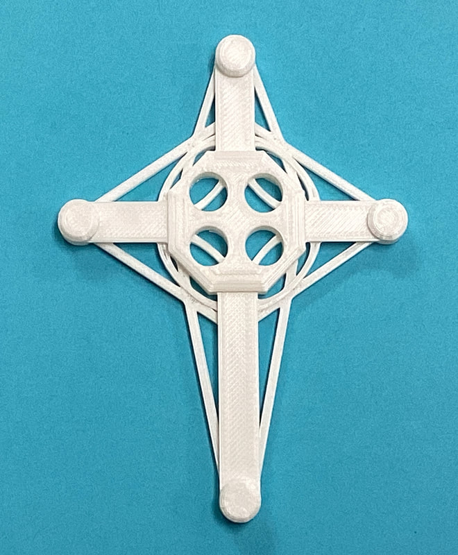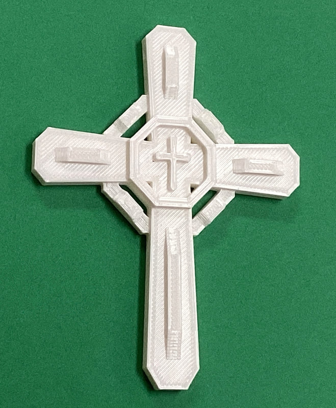 Eighth grade Art Tech students designed cross pendants with the Tinkercad computer-aided design app. Shown below are 3D prints of some of their work, which can be worn on a string or thin chain.