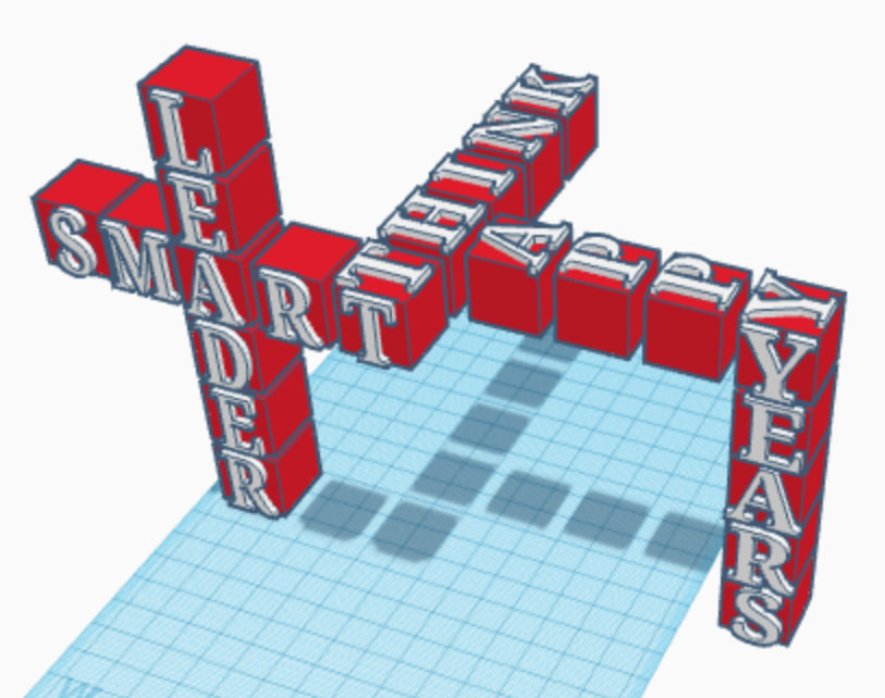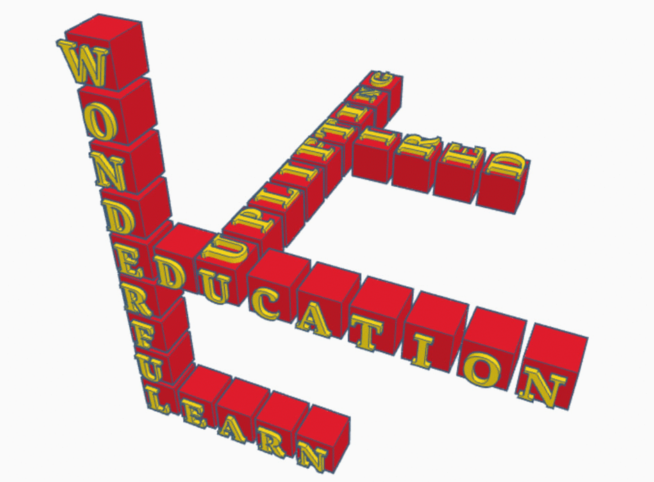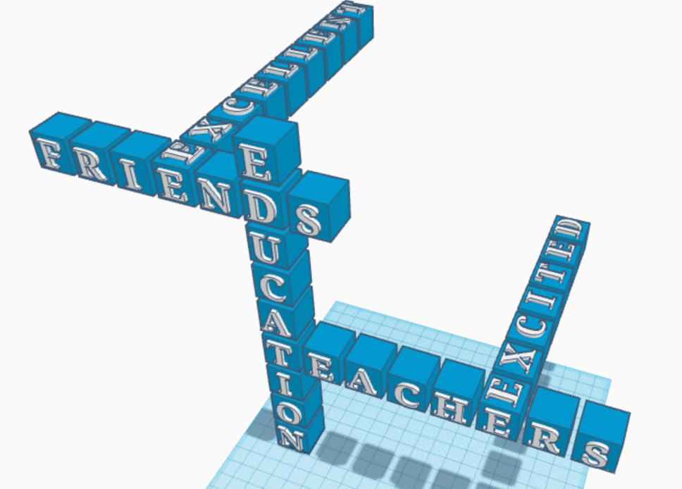 Sixth graders recently designed their “dream homes” with Tinkercad computer-aided design software on their iPads. To supplement their poetry work in Mrs. Wingfield’s 6th grade language arts class, students created 3D crossword designs with Tinkercad in art class. The words in their designs are from their poems.
