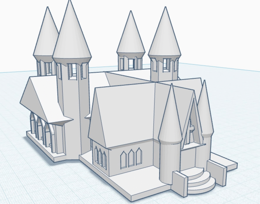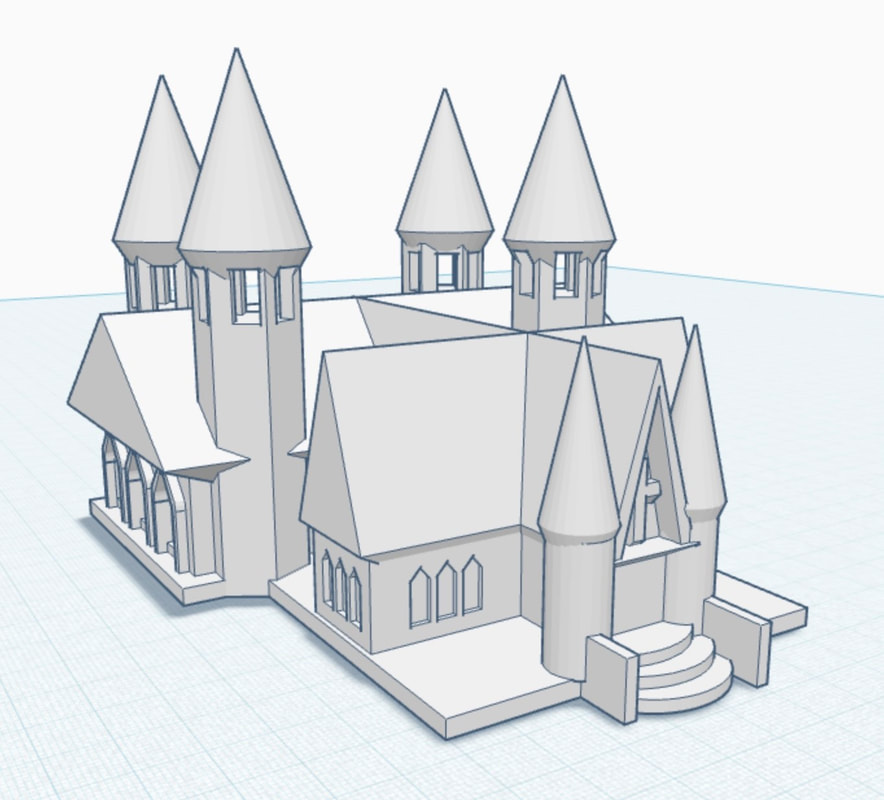 A computer-aided design model of a church by 8th grader Jatin Pandya and the resulting 3D print are shown here. Jatin and other members of our middle school robotics and CAD group, which meets on Thursdays and Fridays, have recently been designing churches.