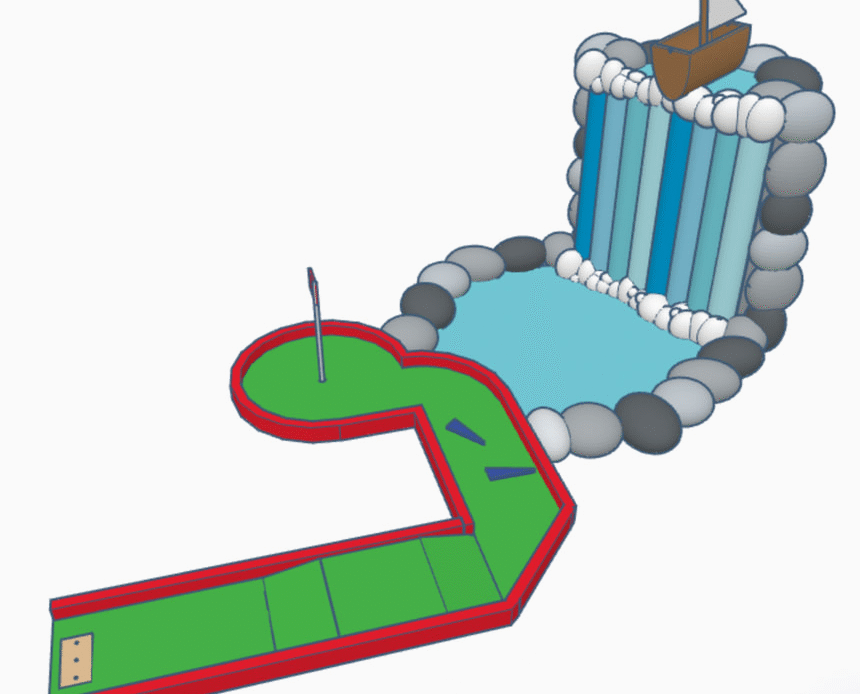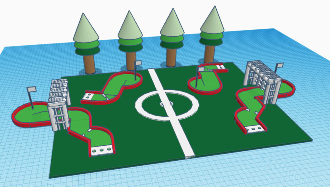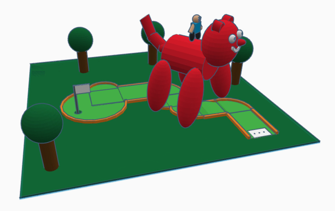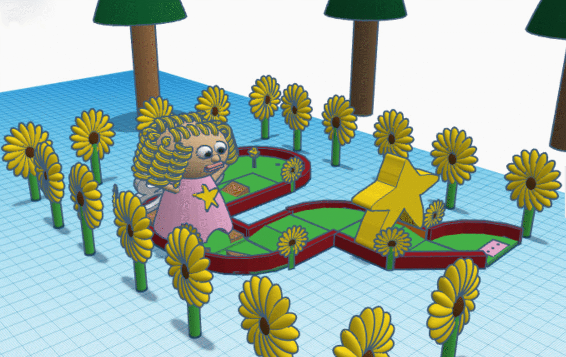 This week’s student art features Tinkercad models of mini-golf lanes by 7th graders (a joint art and math project), 8th grade human figure sculptures, and the 6G robot exam.