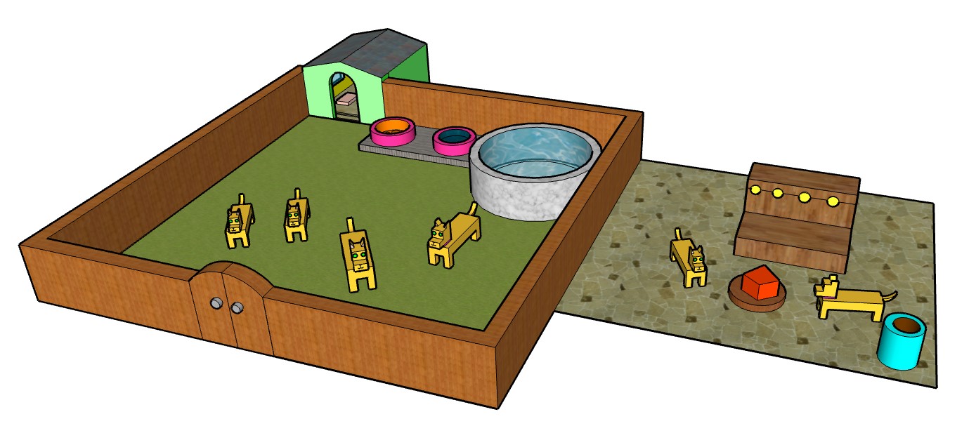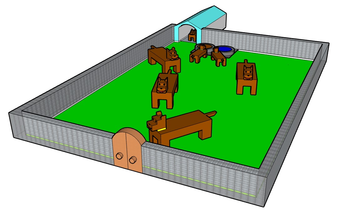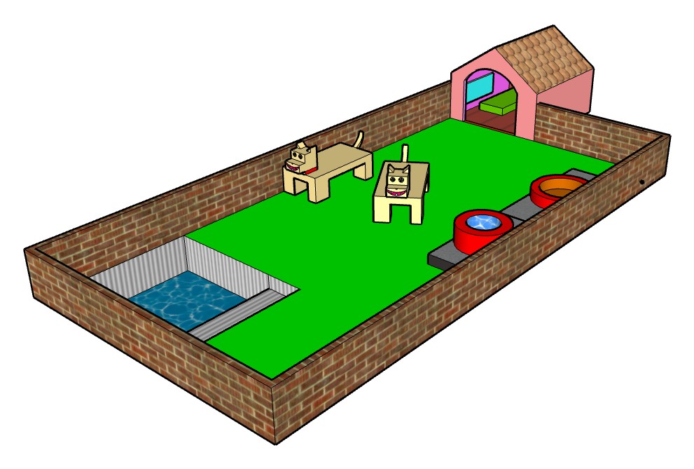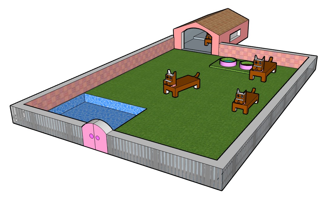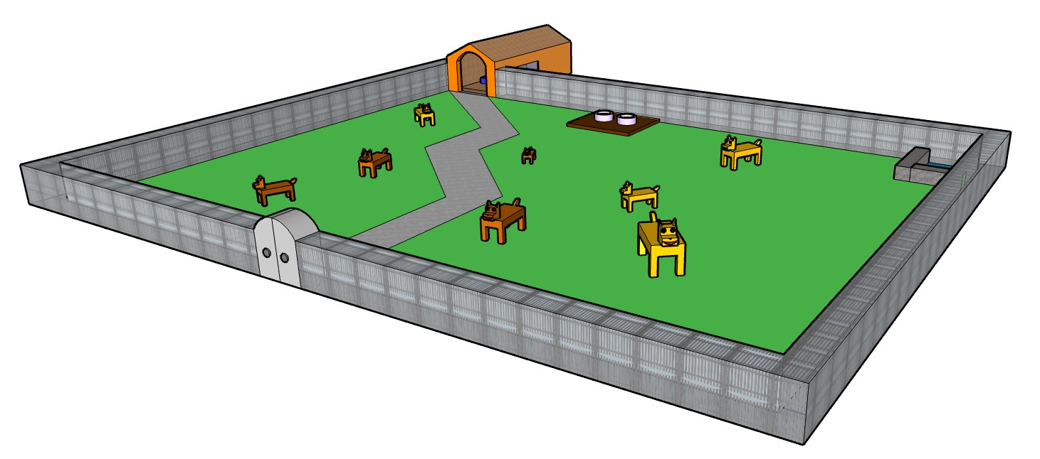 Third grade art students recently created virtual models of dogs, as well as doghouses and pens, with Sketch Up for Schools computer-aided design (CAD) software on Chromebooks. By using this geometry-based digital tool, students learned that lines can be used to form planes and that planes can become components of complex structures. A selection of works by students of the 3D class appears here. The Sketch Up model shown above is by Cadence Haase.