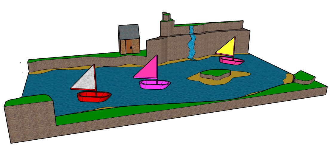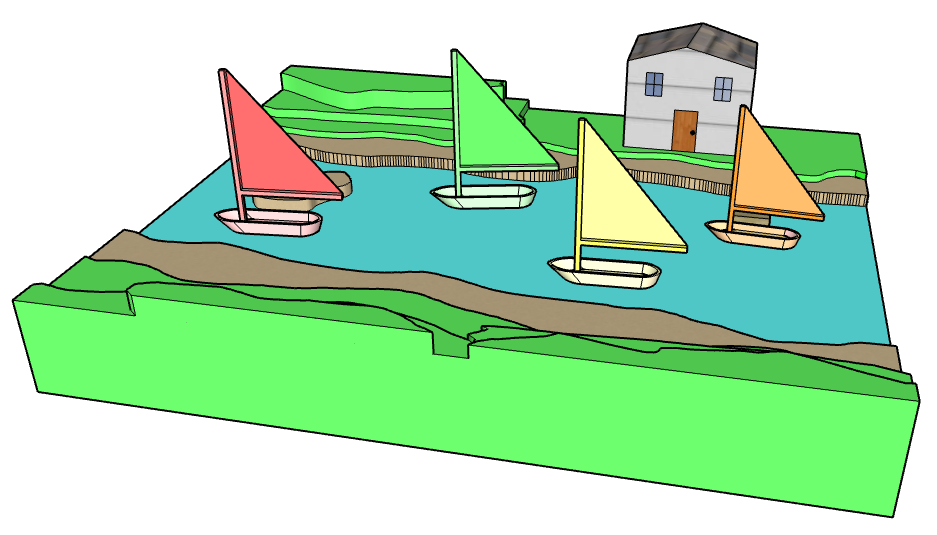 Fourth grade art students have been making virtual 3D models of sailboats in landscapes with Sketch Up for Schools computer-aided design (CAD) software on Chromebooks.