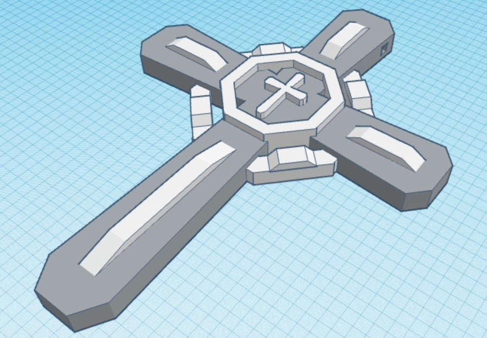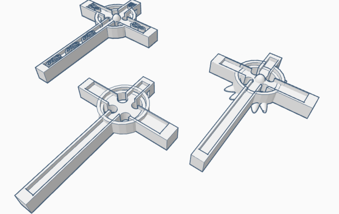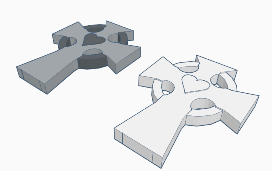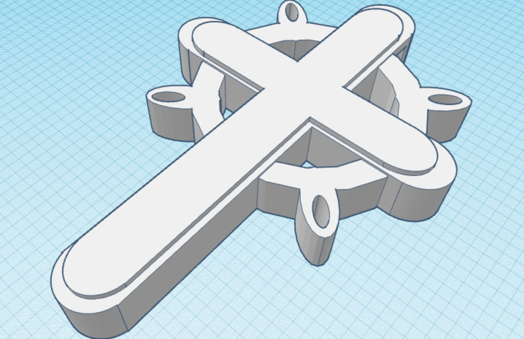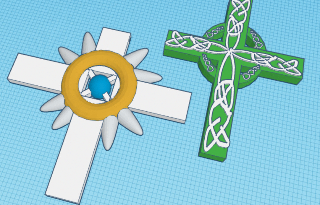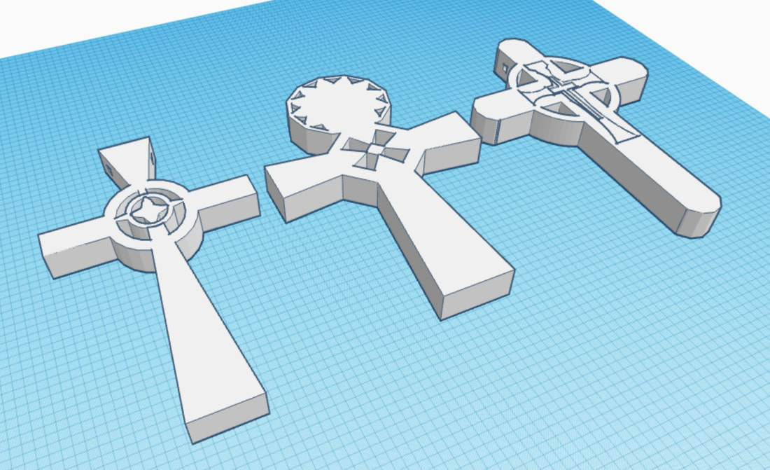 Eighth grade Art Tech students have recently been creating cross design pendants with the Tinkercad computer-aided design app on their iPads. The goal is to 3D-print a pendant for each student who has successfully completed the project. Printing will be done during the remainder of the school year. Students may pass a string or chain through a horizontal hole in the top to wear the cross as a necklace.