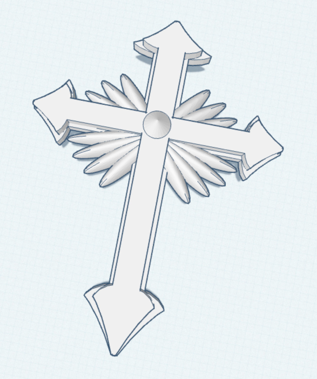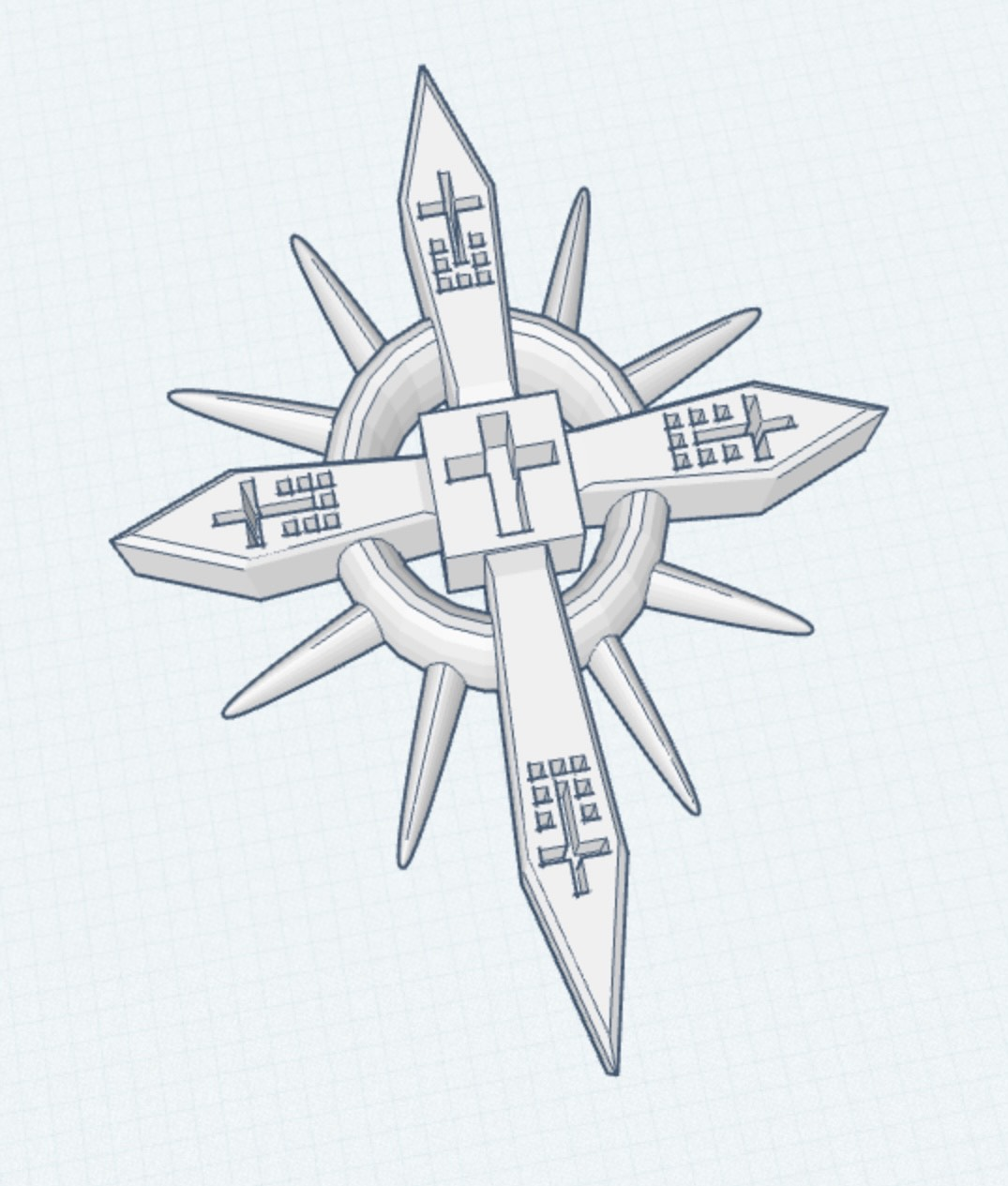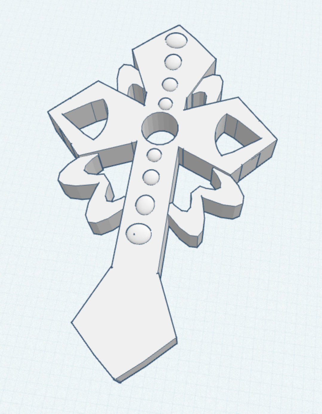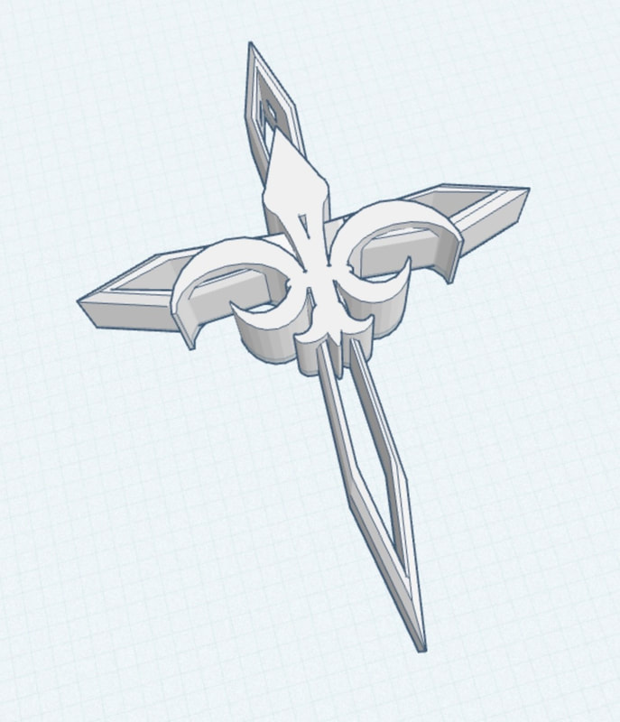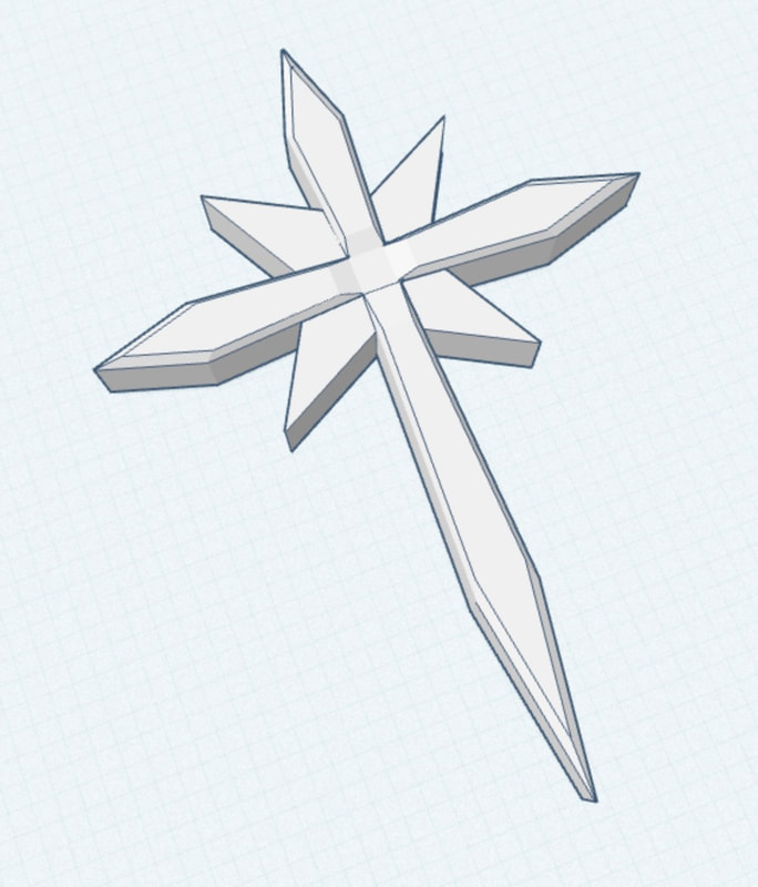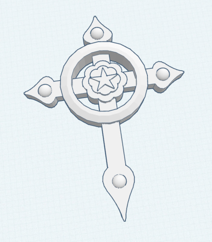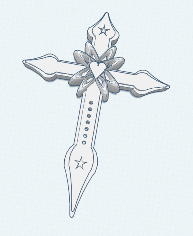 Seventh grade Art Tech students have recently been designing cross pendants with the Tinkercad computer-aided design app on their iPads. Students learned various techniques for modifying, manipulating, and combining the most basic shapes of the Tinkercad toolkit to develop the complex forms of their own unique designs. Shown below are a selection of designs by 7th graders that they created for 3D printing. The 3D printed models will be wearable as necklace pendants on a string or thin chain.