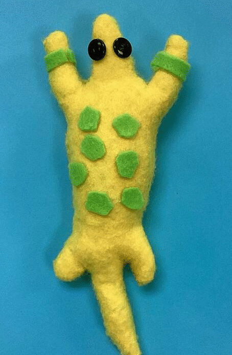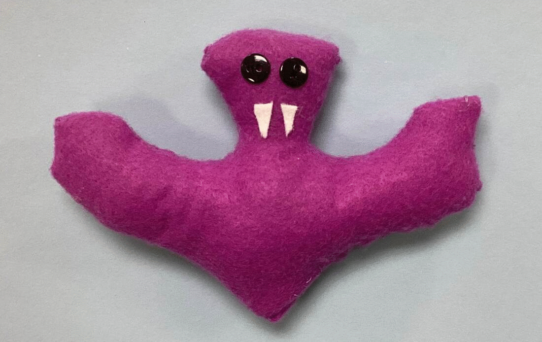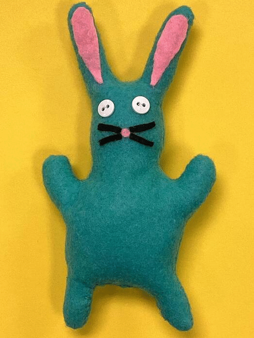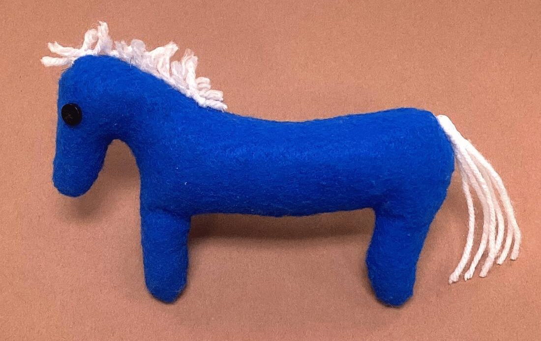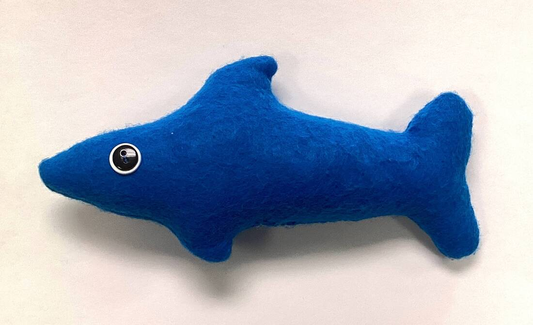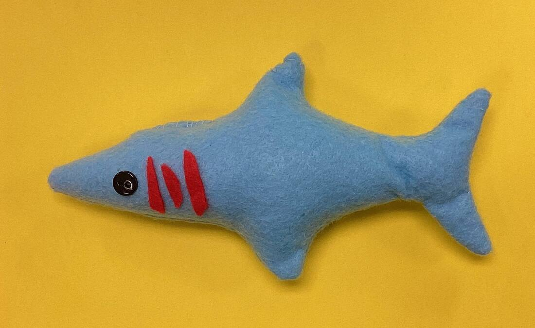 Cloth pillow sculptures by sixth graders are shown here. In this multistep design and construction project, students employed fine motor skills and spatial-structural reasoning as they created 2-dimensional plans on paper which eventually became 3-dimensional pillow forms. Various sewing stitches and fabric glue were used to complete these artworks.