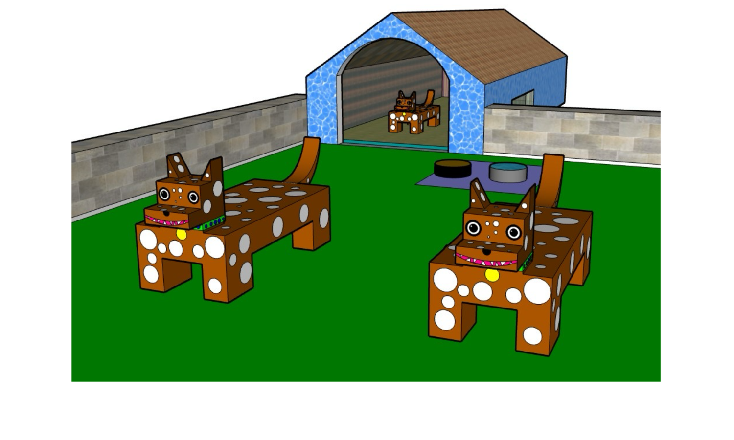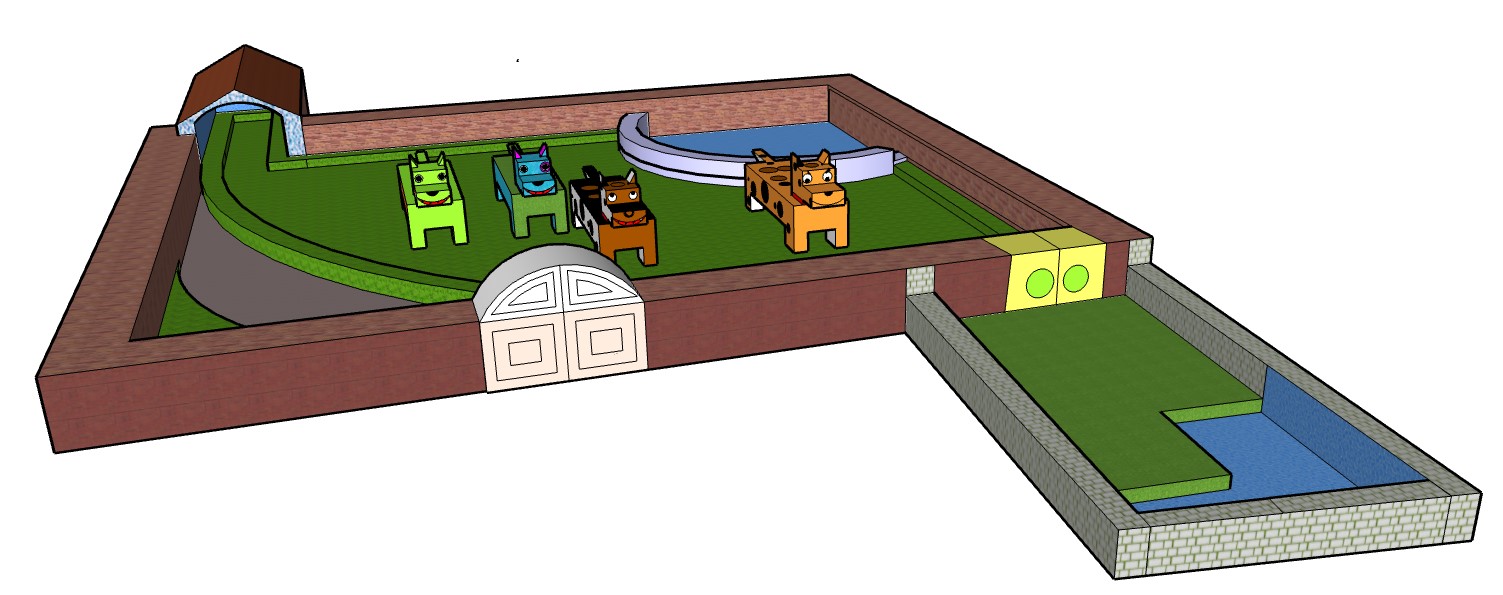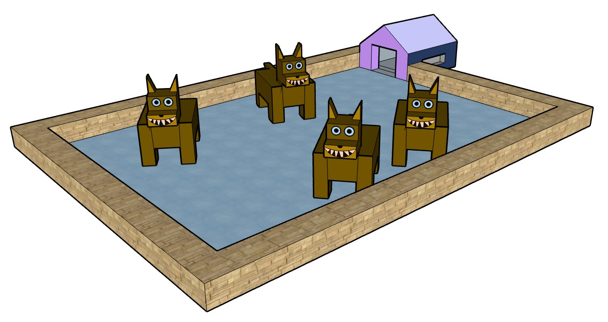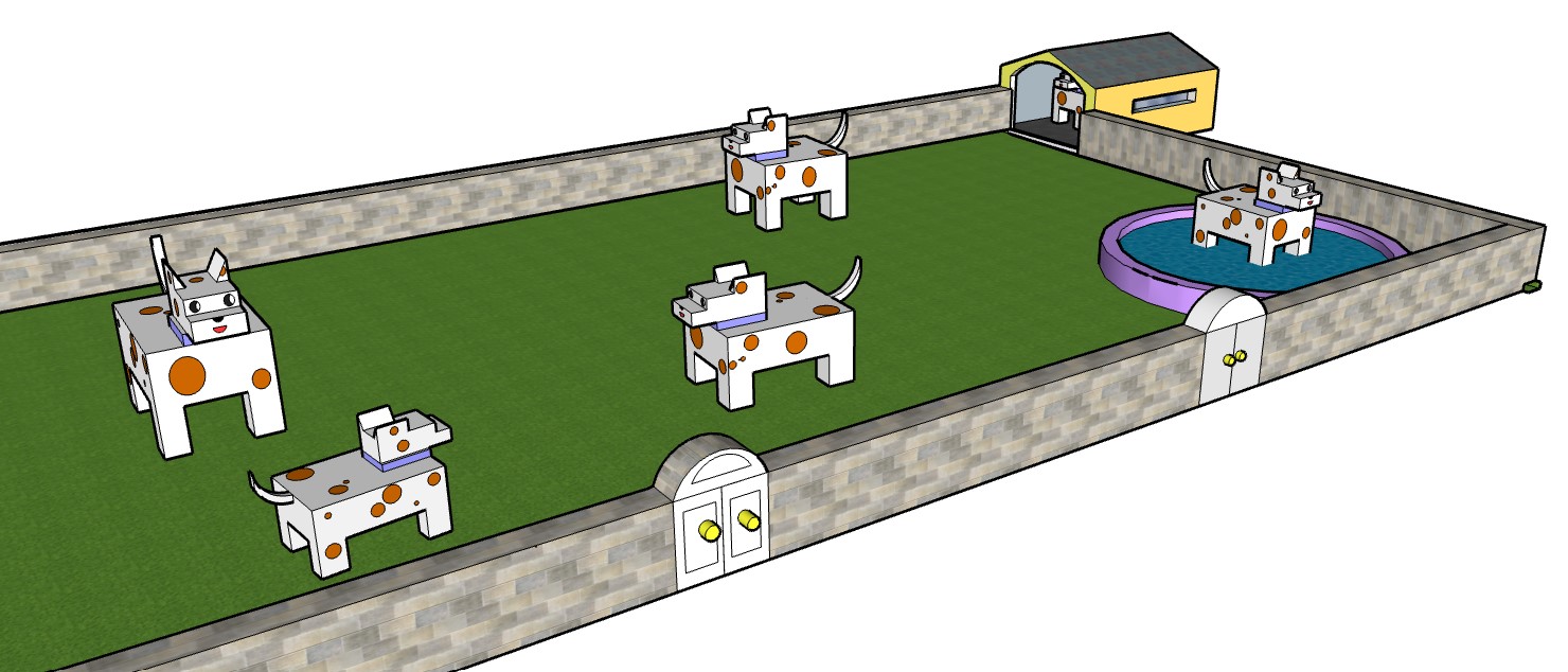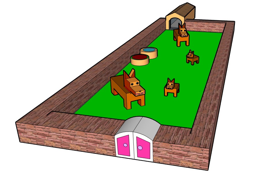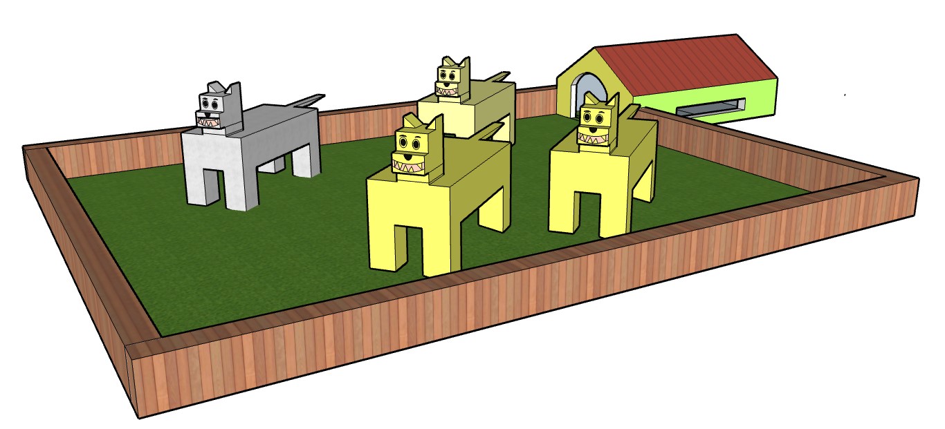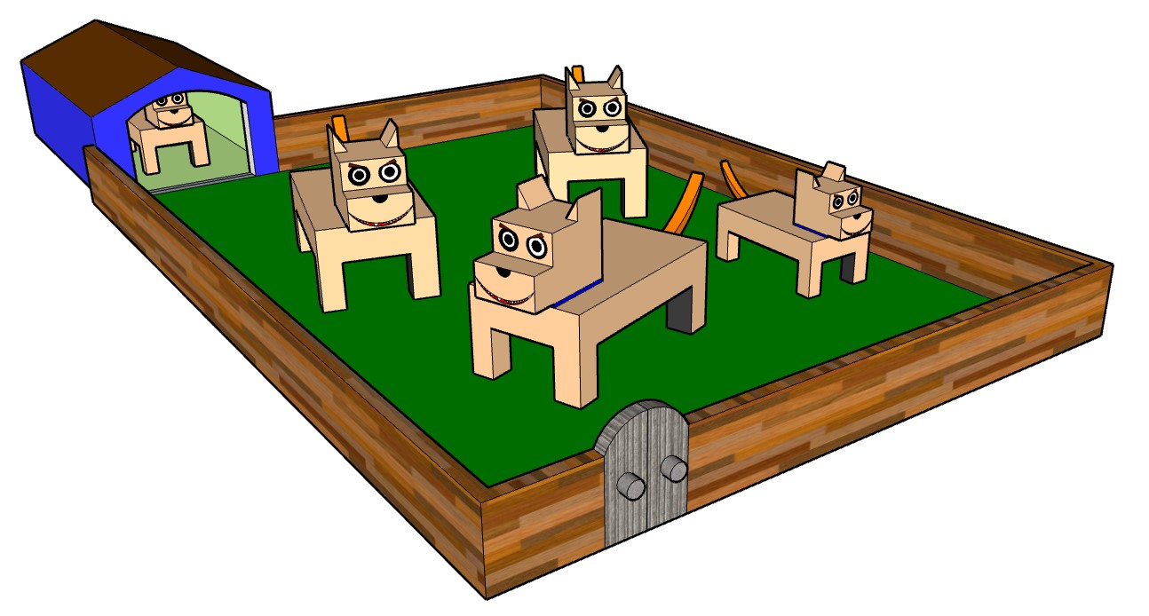 With Sketch Up for Schools computer-aided design (CAD) software on Chromebooks, third graders have created virtual models of dogs, doghouses, and pens. While using this geometry-based program to work creatively, students learned that lines can be used to form planes and that planes can become components of complex structures. A selection of works by students of the 3H class appears here.