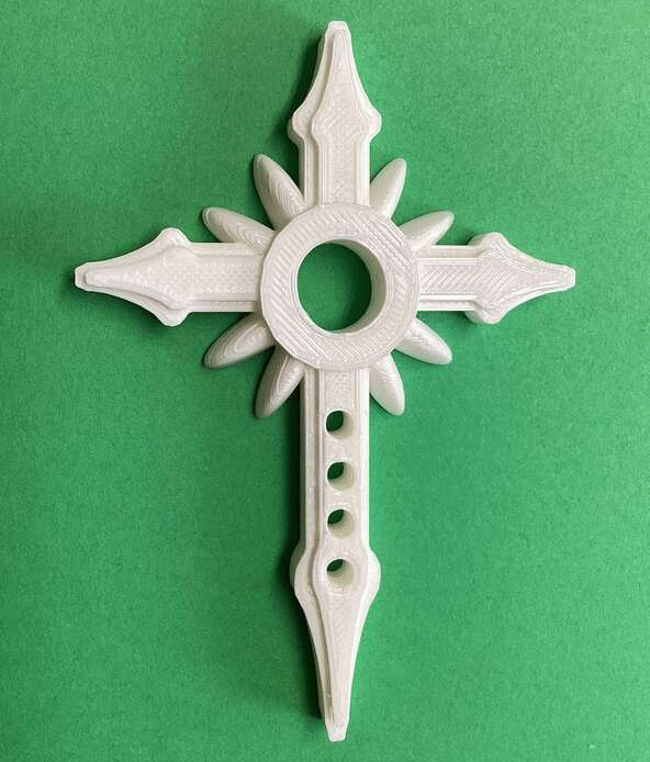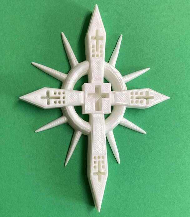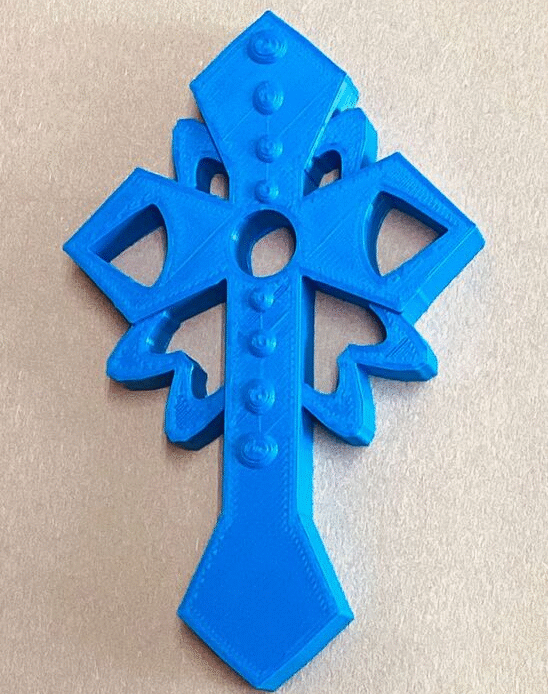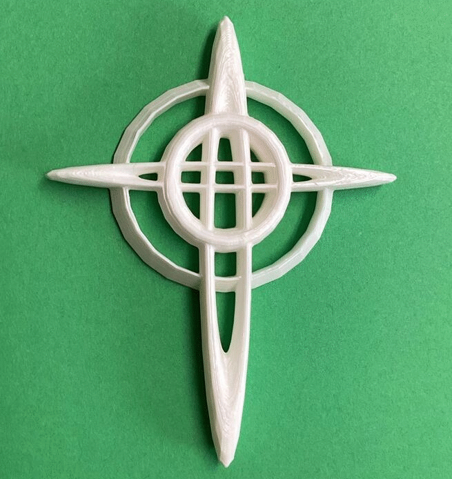 Students of the 7th grade Art Tech classes have designed cross pendants with the Tinkercad computer-aided design app. After viewing various Celtic-style cross designs for inspiration, students used this engineering software to express their own creativity. These 3D printed crosses can be worn on a string or thin chain.
