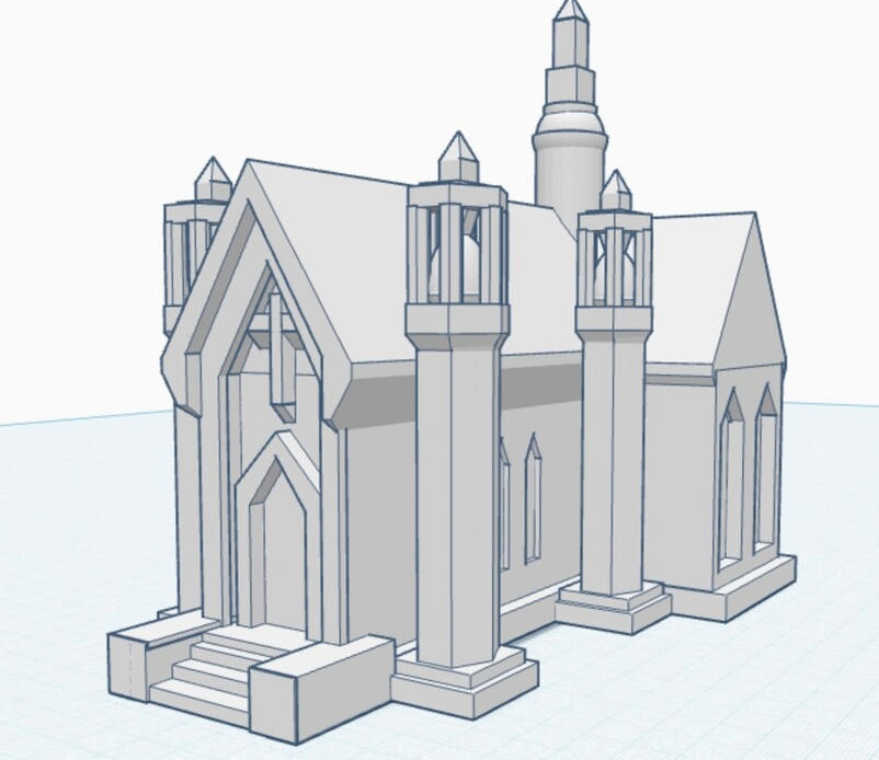 Designing churches for 3D printing is the current challenge for our middle school robotics and computer-aided design group, which meets on Thursdays and Fridays. A Tinkercad model by 6th grader Henry Madubeze and the resulting 3D print appear below.