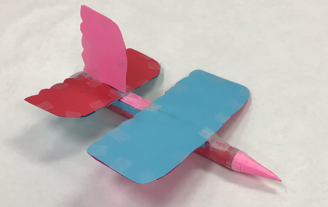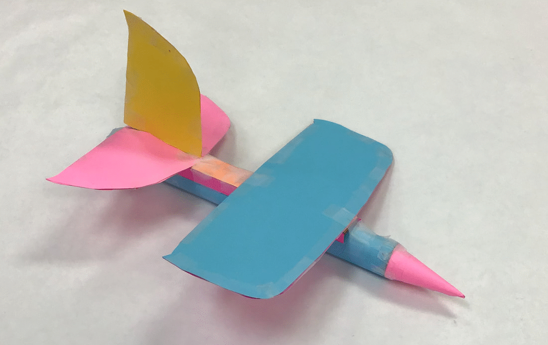 Third graders of the 3H class are shown launching their paper and cardboard jets in the video below. Two jets from the 3H class are shown in photos below. Structural reasoning, measurement, design, and considerations of color were important parts of the process.