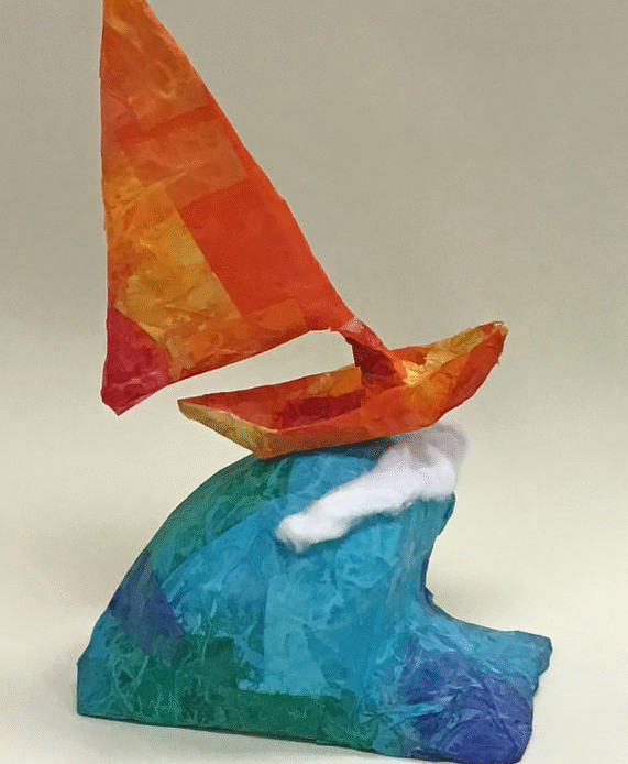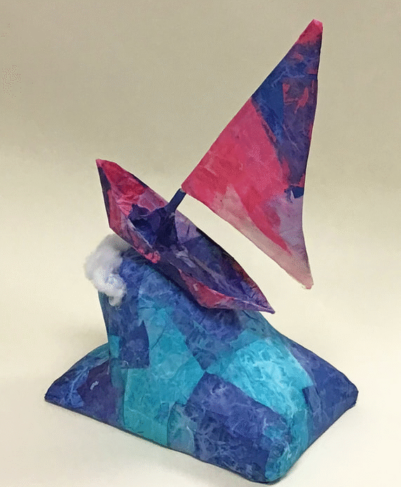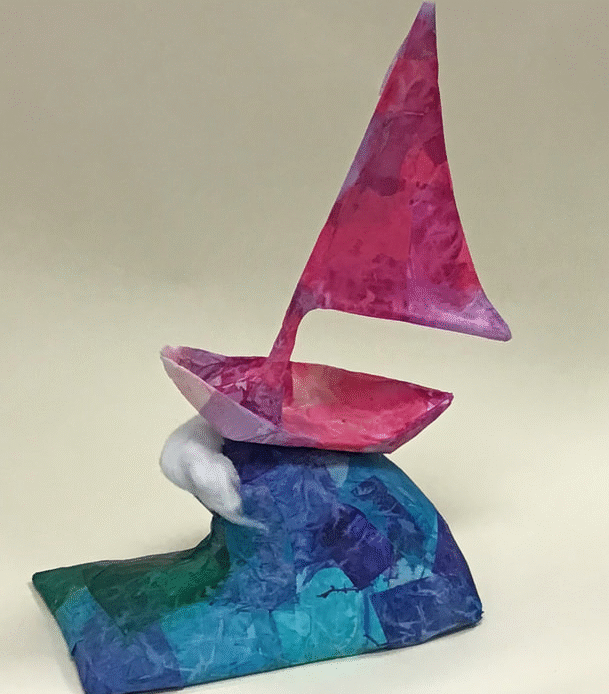 Fourth graders have recently been creating sculptures of sailboats on waves and eighth graders have made human figure models. Both of these projects involve multi-step processes and a variety of materials. Students employ spatial reasoning as they express their creativity while completing these assignments.