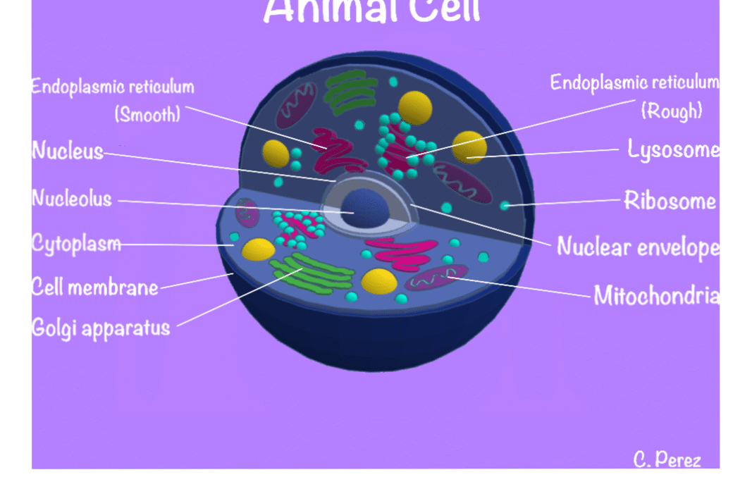Recently, the 7C Art class has been creating virtual 3D models of animal cells with Tinkercad computer-aided design software on iPads. Students imported photos of their CAD models into the Sketchbook or Google Slides apps, where labels and background colors were added.