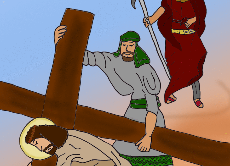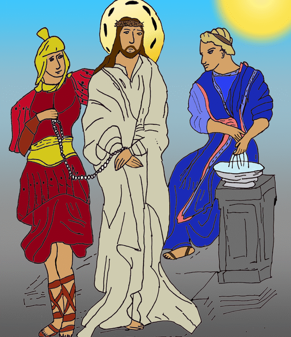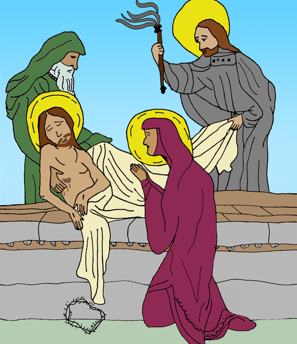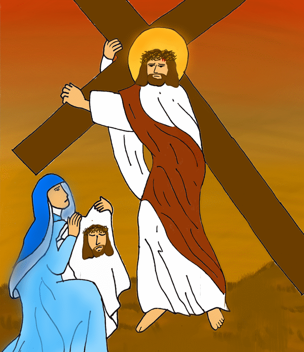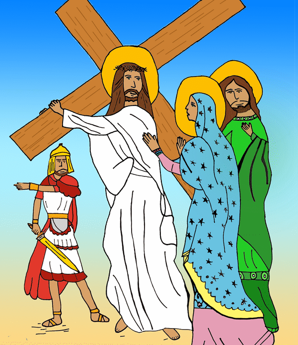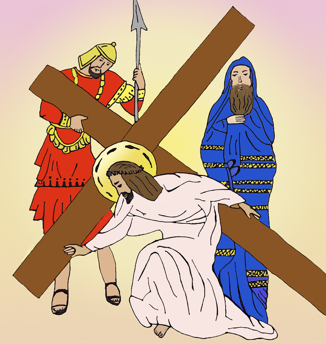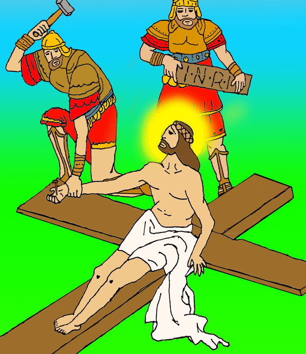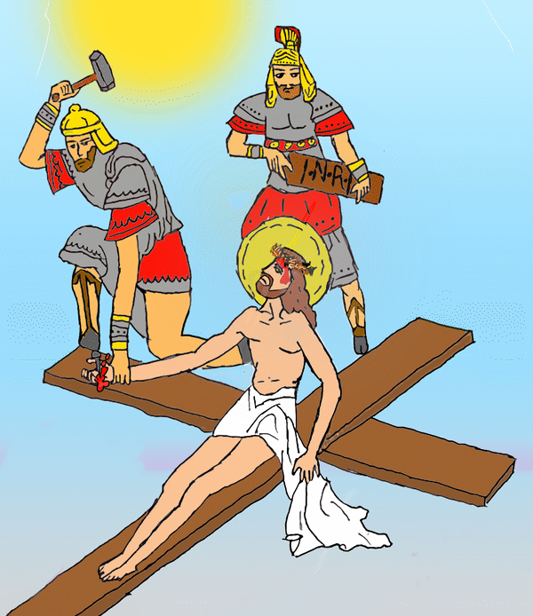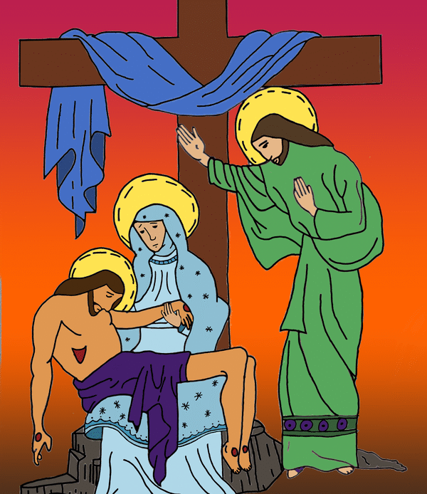 The 8th grade classes did such a good job on the Stations of the Cross project this year that Mr. Bell decided to show two artworks for each station, instead of just one, as we have done in the past. The artwork was posted on the playground for the school-wide Stations of the Cross during Holy Week.
