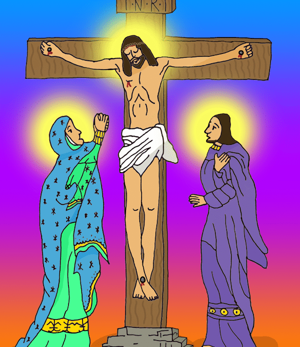 Eighth graders in Mr. Bell’s Art Tech classes used the Renaissance-based grid method to create free-hand pencil and ink drawings of the Stations of the Cross which they colored electronically on iPads. Illustrations by contemporary artist Shari Van Vranken served as models for this student art.