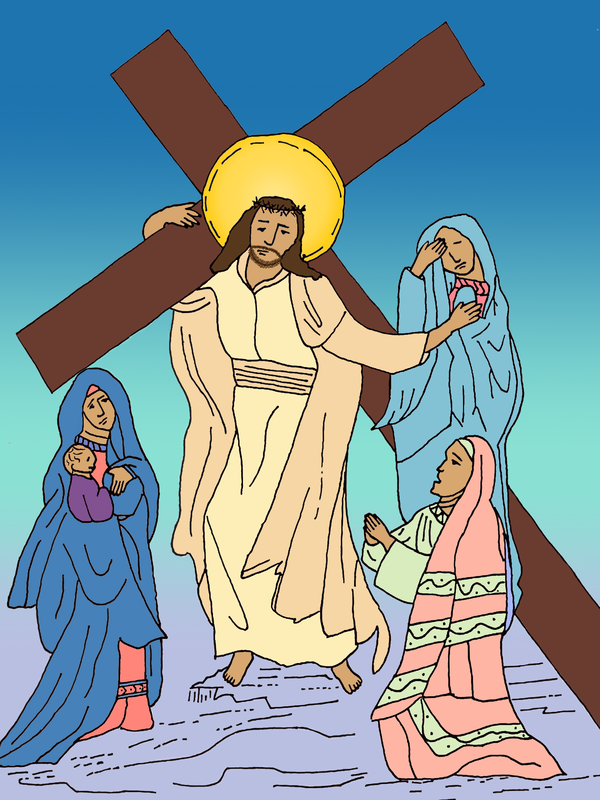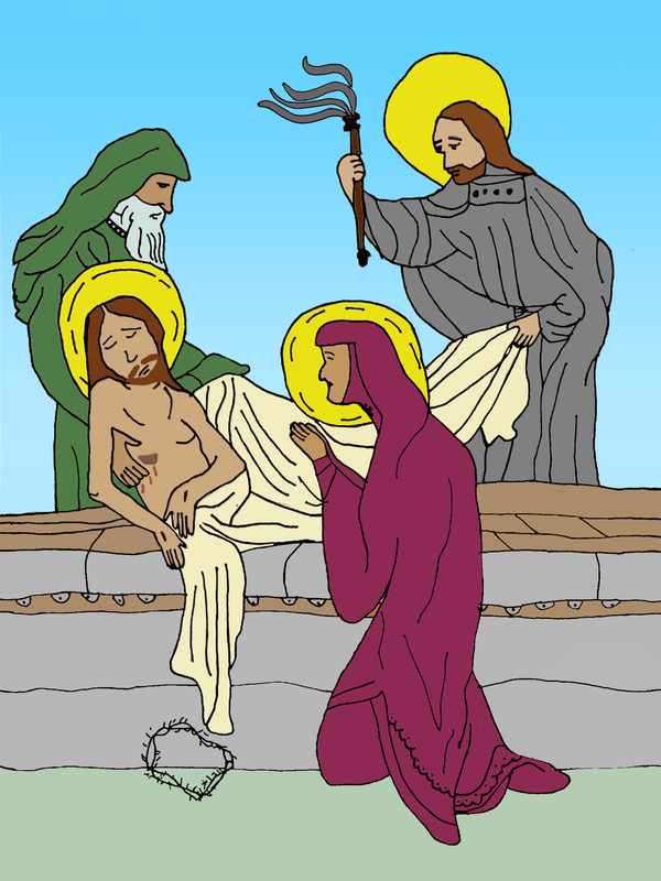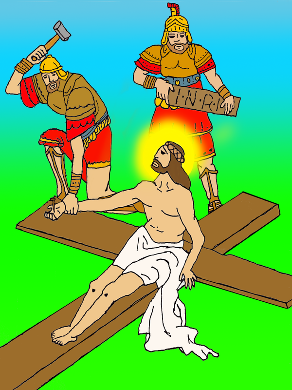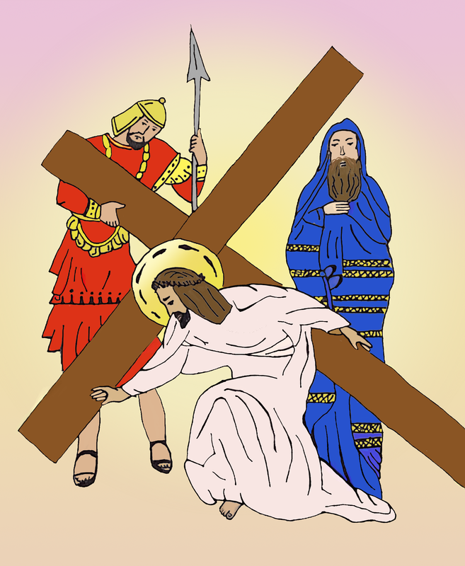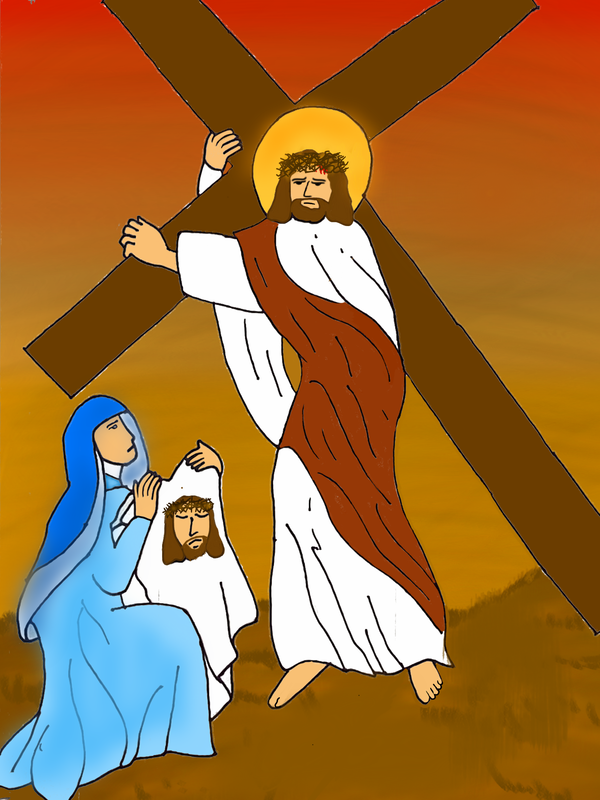 The 8th grade classes did such a good job on the Stations of the Cross project this year that Mr. Bell decided to show two artworks for each station, instead of just one, as we have done in the past. The artwork was posted on the playground for the school-wide Stations of the Cross during Holy Week.