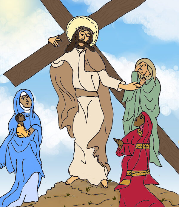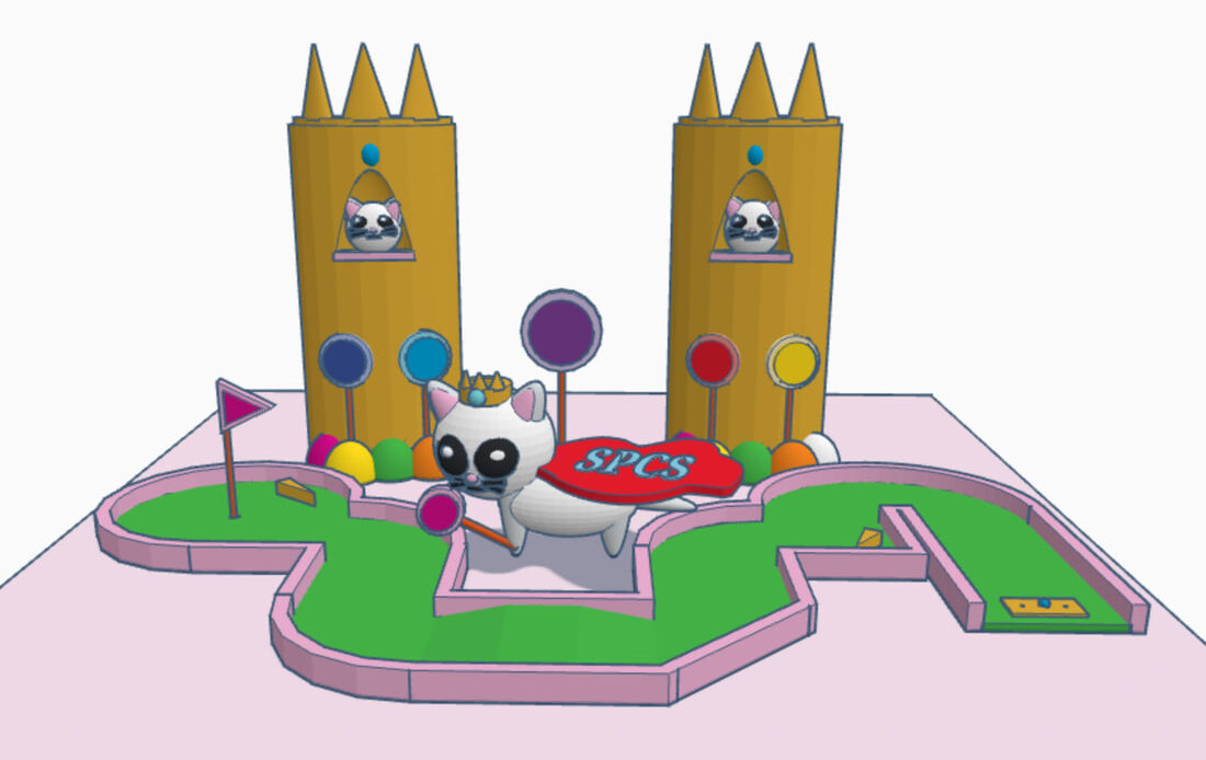 This week’s Art Tech student work is from the 8th grade Stations of the Cross project and the 7th grade mini-golf design project. The 8th graders used the grid method to make free-hand pencil drawings of illustrations by contemporary artist Shari Van Vranken. The students colored photos of their own drawings in the Sketchbook app on their iPads. Seventh graders created their mini-golf lanes and the surrounding thematic sculptural forms with Tinkercad computer-aided design software on their iPads. Dimensions of the putting lanes and walls are used for performing math calculations. Students engineered all of the complex 3D forms in their models using only the simple shape tools of Tinkercad. This math-art interdisciplinary project was developed by Mr. Bell and Mrs. Cvetan, who teach it collaboratively.